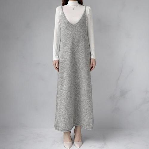 [다잇템]여성 캐미 에이라인 롱가을 울니트 V넥 원피스