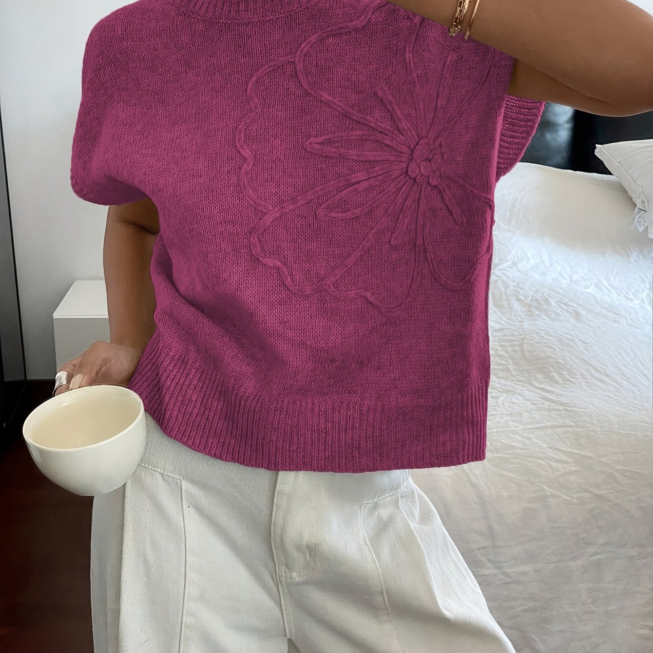 TEMU 여성 솔리드 컬러 풀오버 | 캐주얼 크루넥, 민소매, 루즈핏, 플로럴 아플리케, 올 시즌 착용