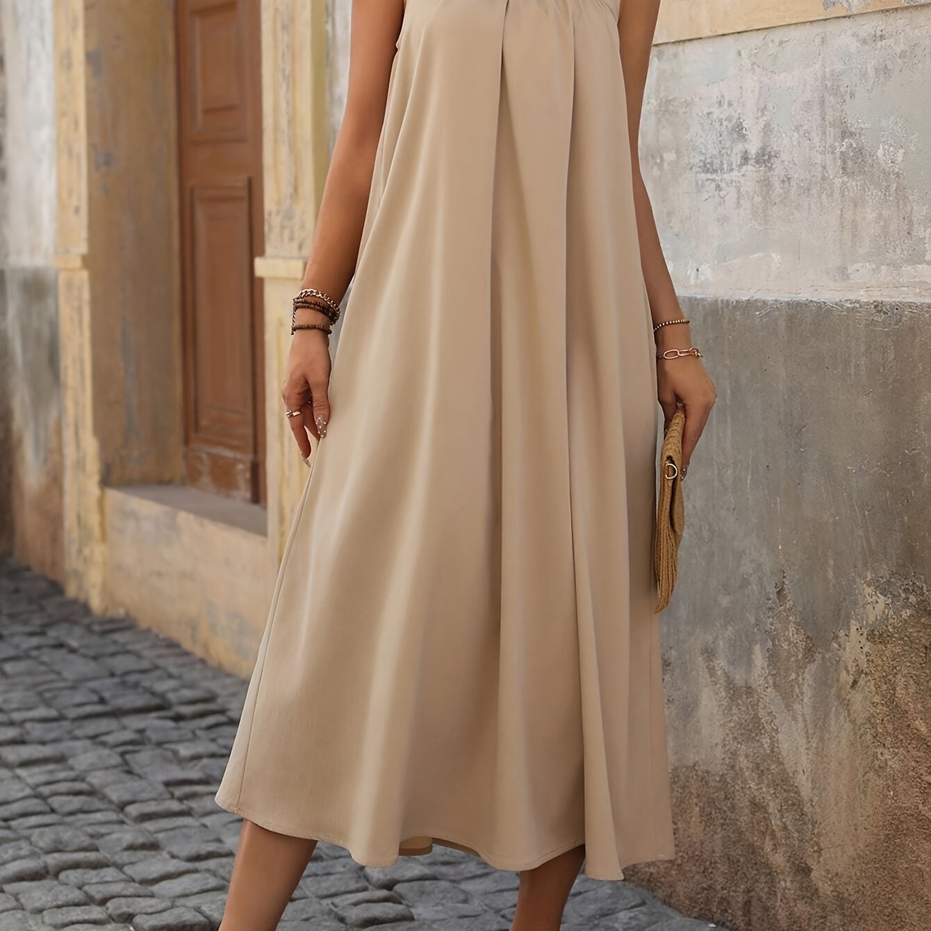TEMU 접힌 민소매 드레스, 캐주얼 크루넥 여름 단색 드레스, 여성 의류