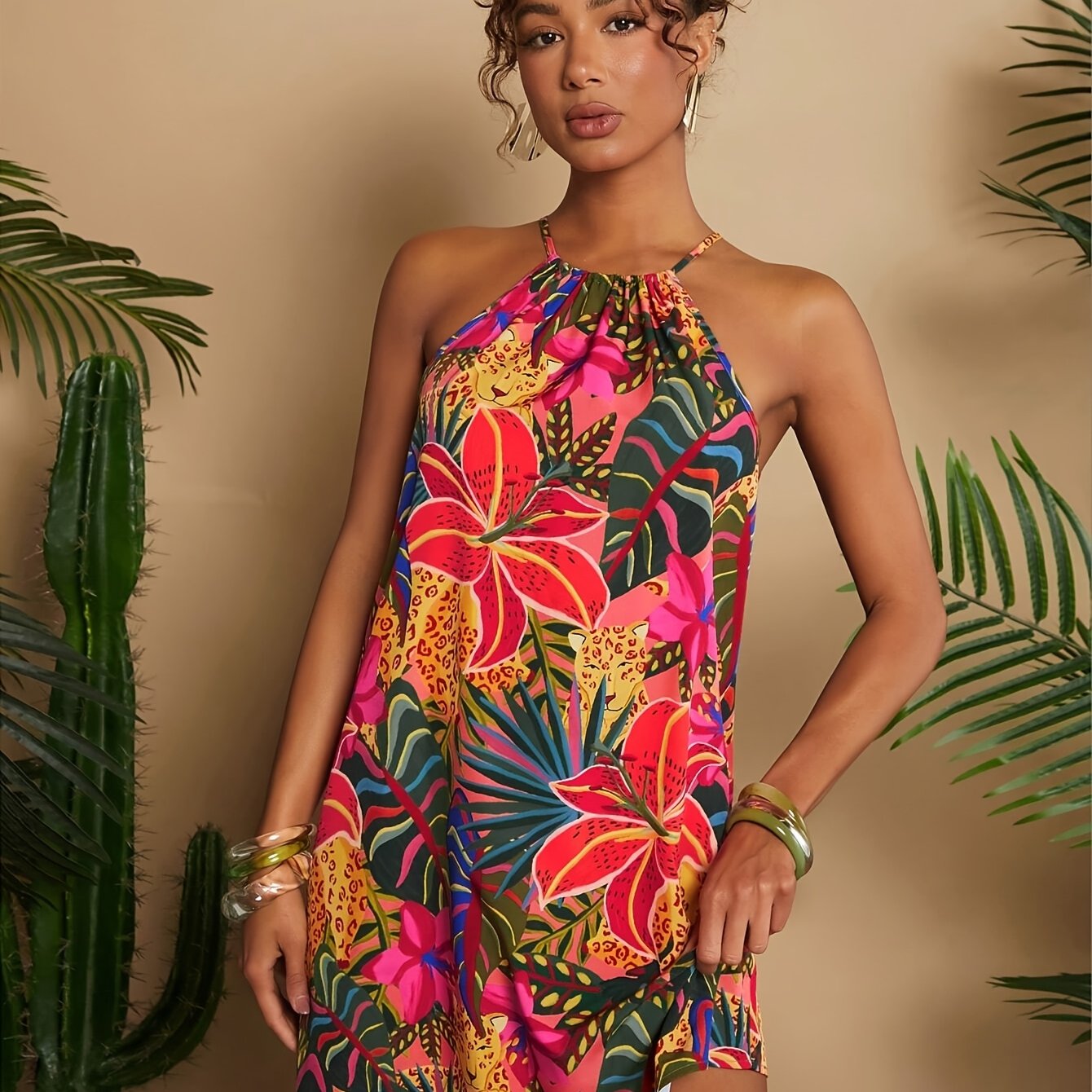 TEMU 여성용 스타일리시 오프숄더 플로럴 드레스