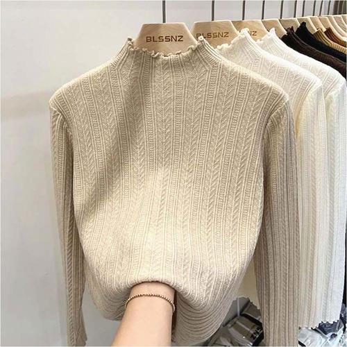 여성 프릴 반목 이너니트 긴팔 하프넥 레이스 티셔츠 슬림핏 WFKO4CC