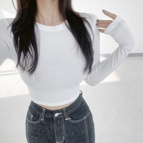 글램핏 / 1+1 기본 크롭 워머 슬림핏 라운드넥 이너 긴팔 티