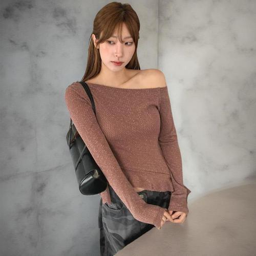 [다잇템]여성 프릴 슬림핏 긴팔티 원오프숄더 니트