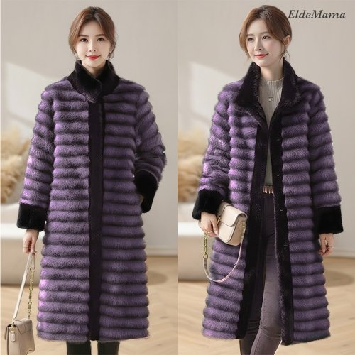 2025 겨울 신상품 미디 롱 차이나 슬리브 밍크 루즈한 에코 여성 퍼 코트입니다
