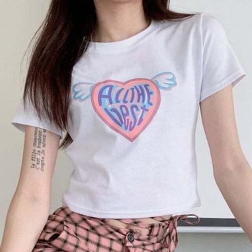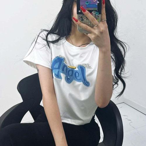 [셀럽하우스]당출 QWQM1118 하이틴 엔젤 프린팅 크롭 반팔 티셔츠 (2color)