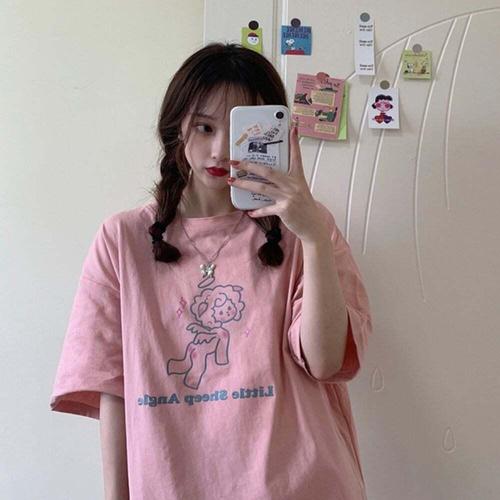 [셀럽하우스]여자 TNKQ9728 리틀 쉽 엔젤 박스 반팔 티셔츠 여름 루즈핏