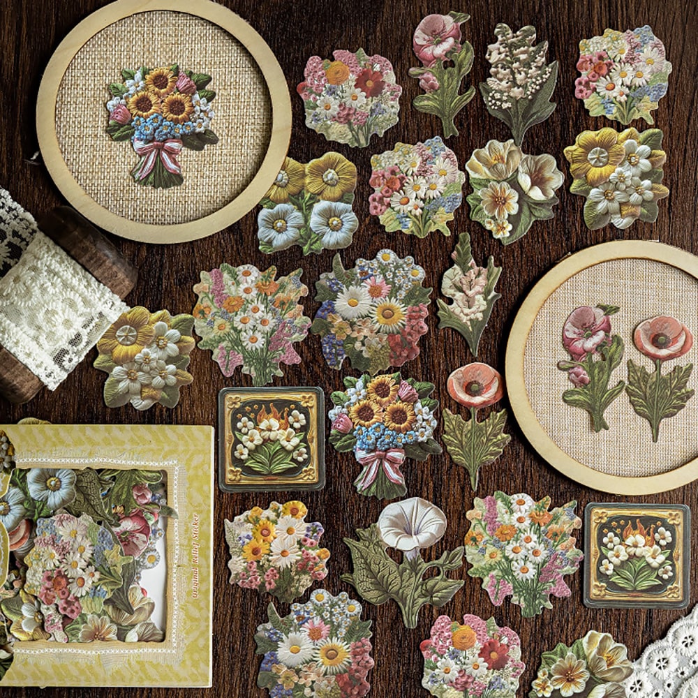 빈티지 꽃 자수 앤틱 스티커 인물 고양이 플라워 다꾸스티커 다이어리꾸미기