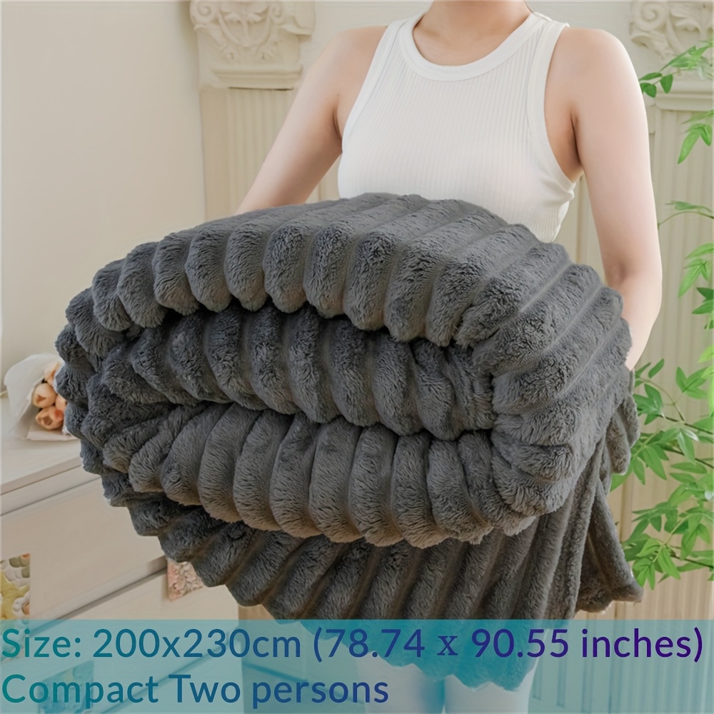 TEMU 럭셔리 인조 토끼 털 담요, 단색 심플 스타일 - 부드럽고 따뜻하며 편안한 소파, 침대, 사무실, 여행용 다목적 담요 - 선물용|이불|소파|원단