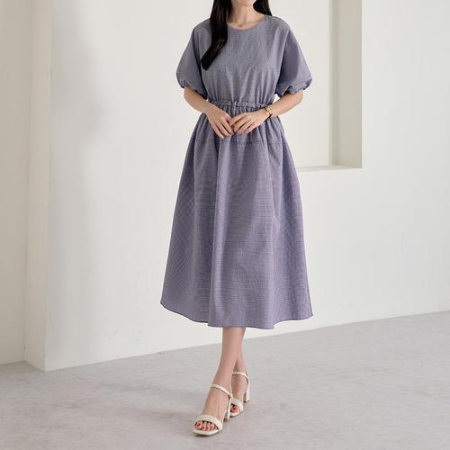 [로즈미] [55~77] 엘르나 스트링 체크 원피스