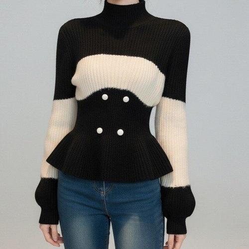 [핑크엘리제]페플럼 투톤 버튼포인트 유니크 엘베라니트탑