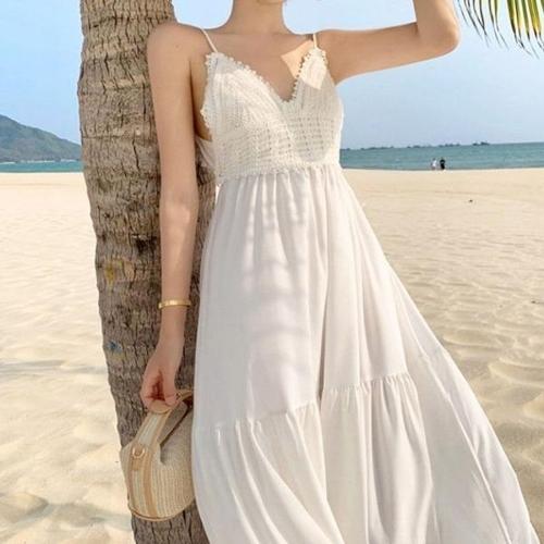 [엄지척]여름 니트원피스 끈 흰색 줄무늬 해변 휴양지_19913070_667501