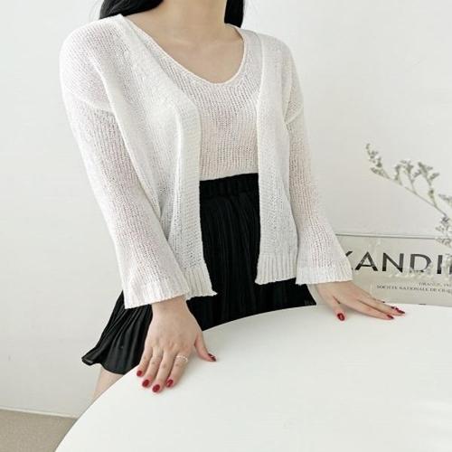 [엄지척]여성 여름 얇은 시스루 니트나시 니트가디건 세트_19874359_667501