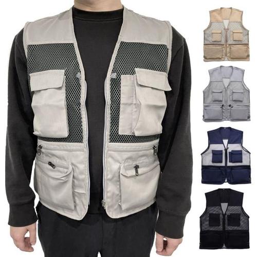 SYRM 여름 남성 아웃도어 멀티포켓 낚시 조끼 낚시복 캐주얼 등산 조끼 점퍼