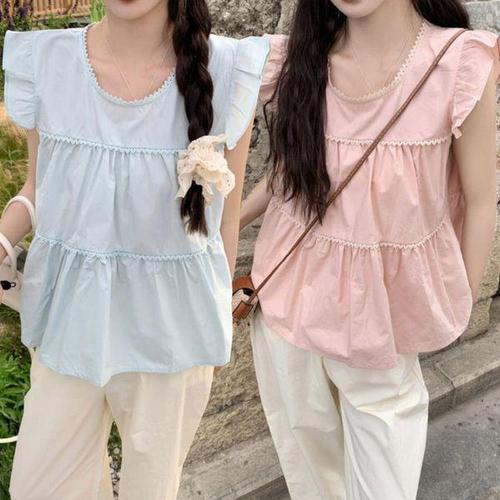 [옷자락]여자 시원한 여름 캉캉 프릴 레이스 블라우스