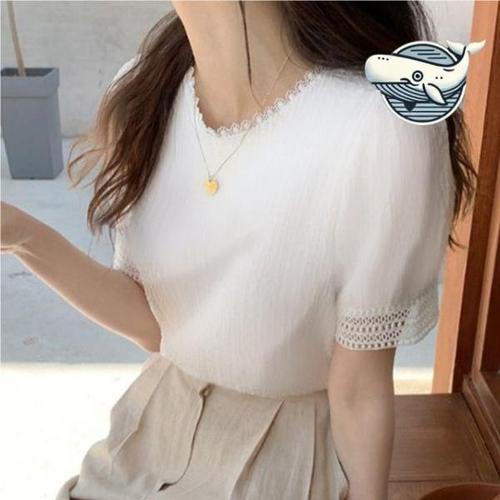 [의류] 여름 러블리 레이스 펀칭 반팔 캐주얼 여자 블라우스