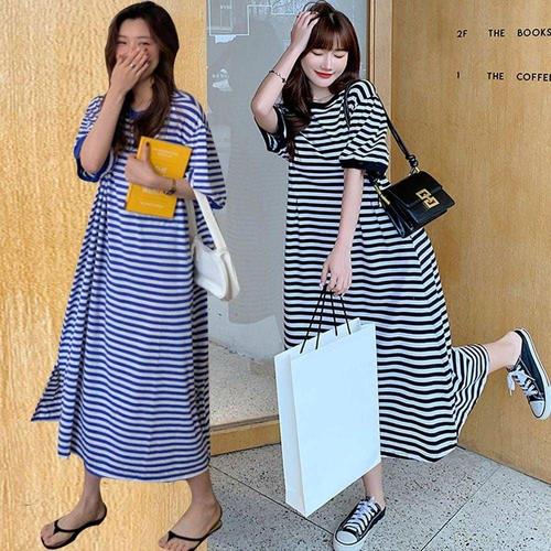 가로줄 여름 원피스 데일리 홈웨어 반팔 롱 원피스 WEEB7F9