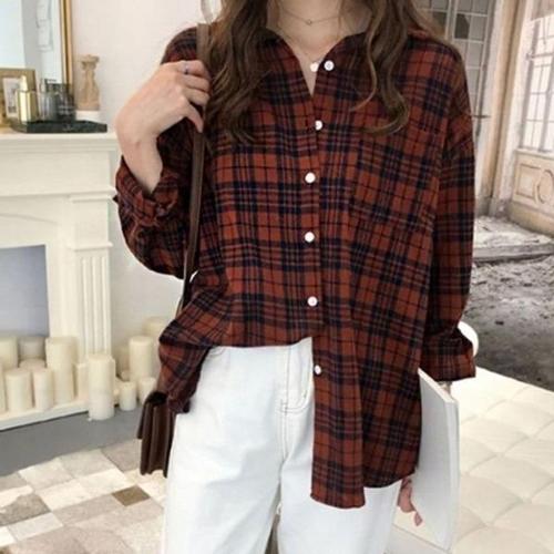 [엄지척]기본 체크 셔츠 여성티셔츠 여름맨투맨 긴팔 면 가을_19642495_667501