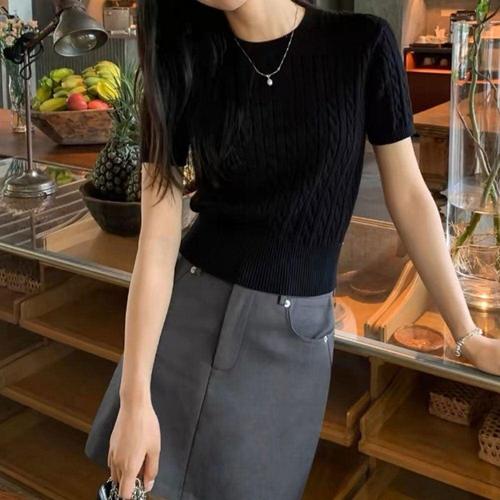 여자맨투맨 캐주얼 여름 얇은 여성 꽈배기 반팔 니트 티셔츠