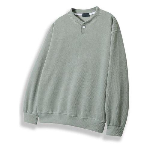 [디바옴므]스윗 골지 니트 버튼 헨리넥 맨투맨 긴팔 티셔츠 세미 오버핏 라운드여름/해변/남성/남자/작업..