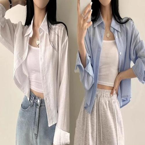 [엄지척]얇은 여성 시스루 셔츠 심플 여름 긴팔 셔츠_19660936_667501