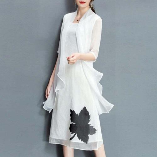[셀럽하우스]여성 GOUZ2607 여름 간절기 롱 가디건 쉬폰 나시 원피스 세트