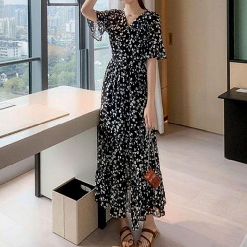 [셀럽하우스]쉬폰 AZPL5245 여름 캐주얼 꽃무늬 원피스 필수템 반팔 롱 여성