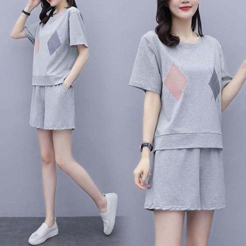 Akimu 여성 여름 패션 트레이닝 세트 베이직 루즈핏 투피스