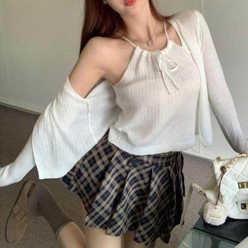 [엄지척]여름 편한 홀터 데일리 여자 나시 가디건 니트 세트_19799416_667501