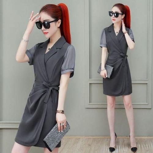 [셀럽하우스]여자 NXTO7463 정장 스타일 카라 반팔 원피스 고품질 여름 데이