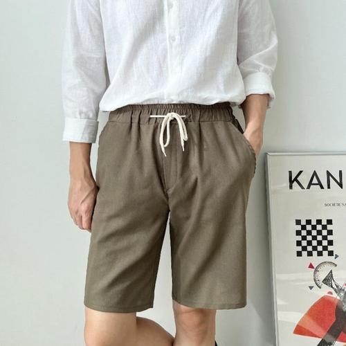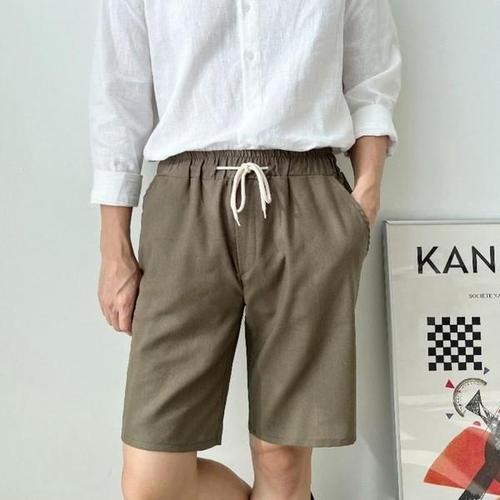 [셀러허브_여성트랜드패션]여름철 린넨소재 허리밴딩 남성 5부 반바지