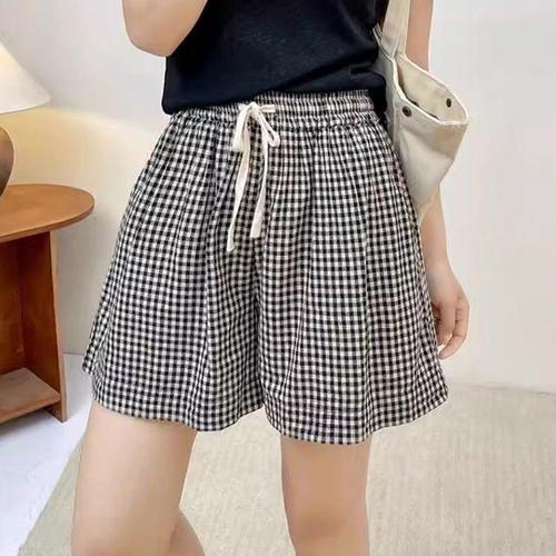 [모노무드]LMO 여자 데일리여름철 심플 배색컬러 허리밴딩 체크패턴 숏팬츠