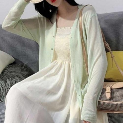 [엄지척]브이넥 여름 가디건 긴팔 시스루 데이트 코디_19800705_667501