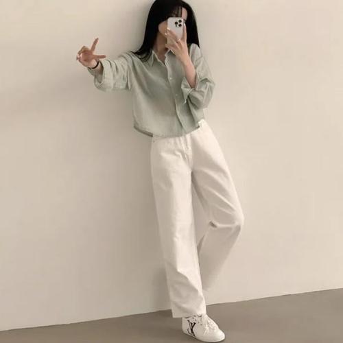 [페리엠]백포인트 셔츠 여름 긴팔셔츠 크롭 모노러브셔츠