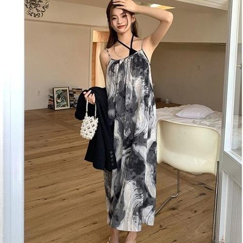 [엄지척]그레이 마블링 끈나시 롱 원피스 여름 휴양지_19952043_667501