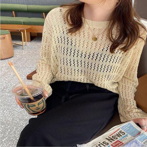 [셀럽하우스]그물니트 GYTX4808 여름 망사 루즈핏 긴팔 여름 티셔츠 4색