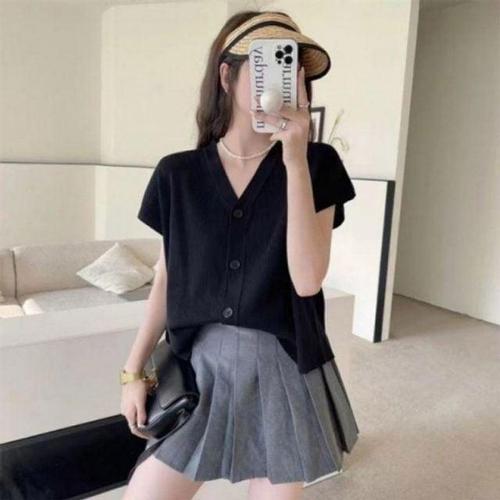 [엄지척]페이크 가디건 옆셔링 여름 반팔 니트 HH-E50_19677882_667501