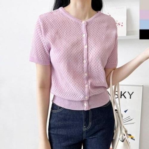 [엄지척]반팔 가디건 뽀얌여름 펀칭 니트 베이직_19799169_667501