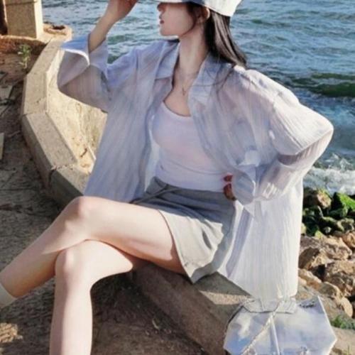 [엄지척]봄 여름 셔츠 원피스 루즈핏 얇은 롱기장 남방 캐주얼_19645271_667501
