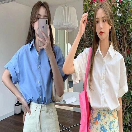[셀러허브_여성트랜드패션]여자 반팔 셔츠 소매 롤업 남방 시원한 여름 루즈핏