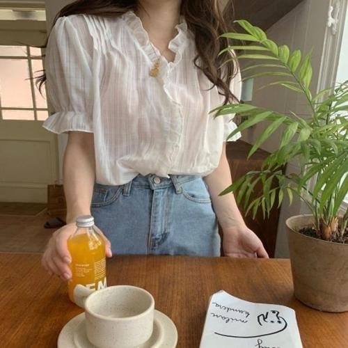 [엄지척]여성 여름 반팔 프릴 러플 루즈핏 러블리 블라우스_19650452_667501