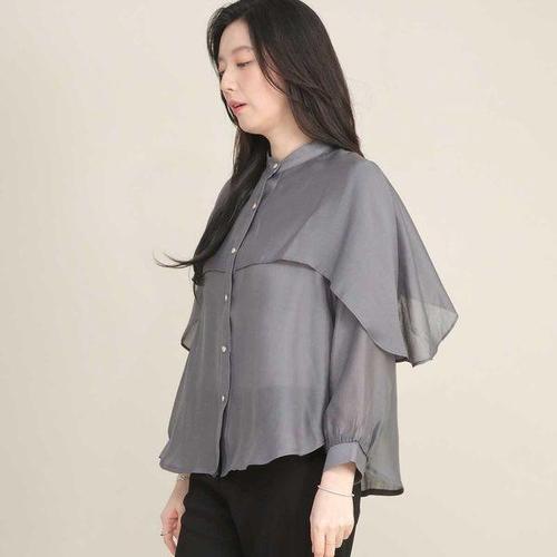 [애비뉴투지]엄마옷 시스루 케이프 스타일 헨리넥 단추 여성 봄 여름 가을 긴팔 블라우스 B02616