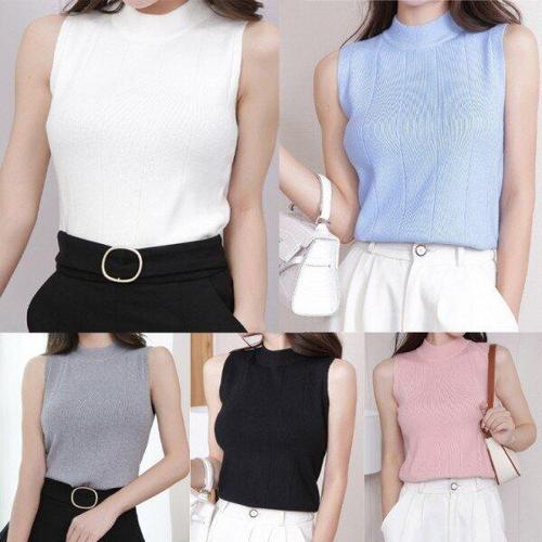 [모노무드]LMO 담을고 레이디스 풀오버 민소매티 하프넥목폴라 나시 스타일 반팔티 썸머 비즈니스룩