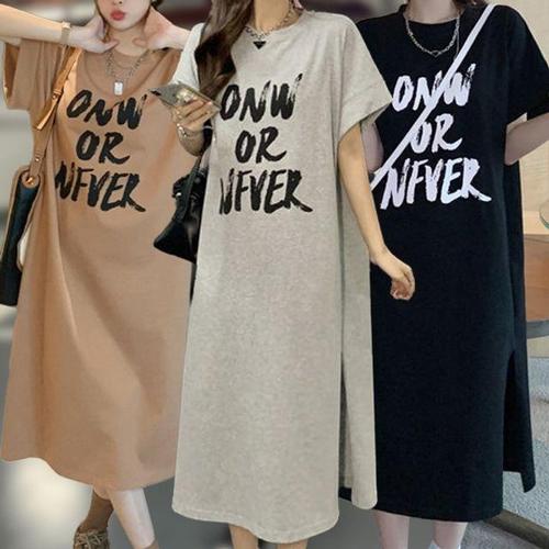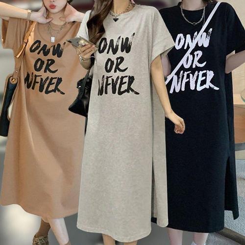 타임퓨어 1+1 여성 여름 캐주얼 원피스 반팔 루즈핏 롱원피스 2종 세트 빅사이즈 편한 롱 티셔츠 오버핏 빅사이즈 홈웨어