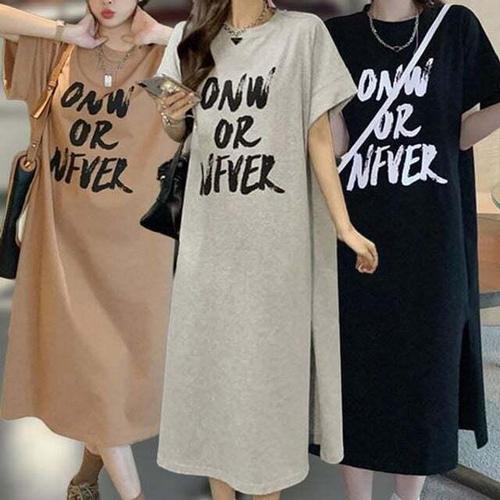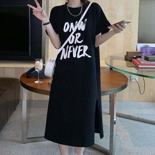 메이첼 빅사이즈 레터링 패치 롱트임 통기성 박스 원피스 00909