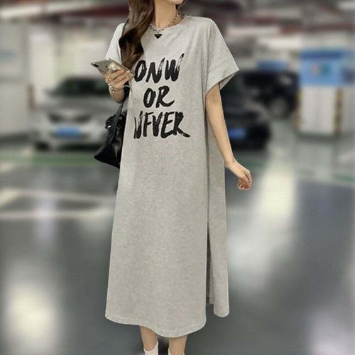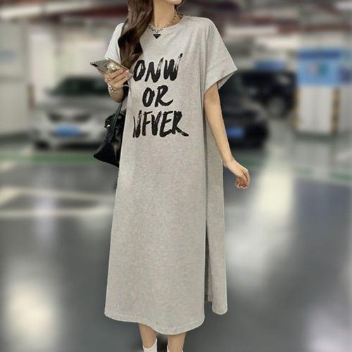 [셀럽하우스]여성 SRDI6749 데일리 여름 반팔 박스 롱 긴 원피스 그레이