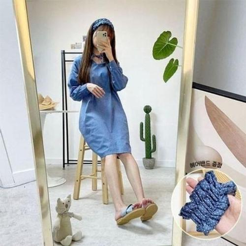 [다잇템]여자 파랑색 썸머 뒷단추 박스 SS 롱원피스