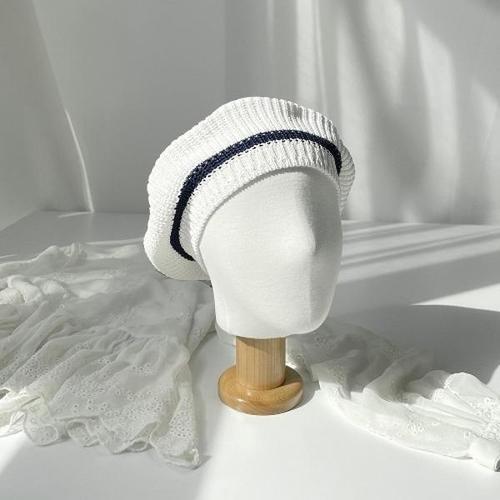 [신상오픈런]|KMC12C2|테테르 배색 흰 줄무늬 여름니트 베레모 모자 여성_18164450_597559