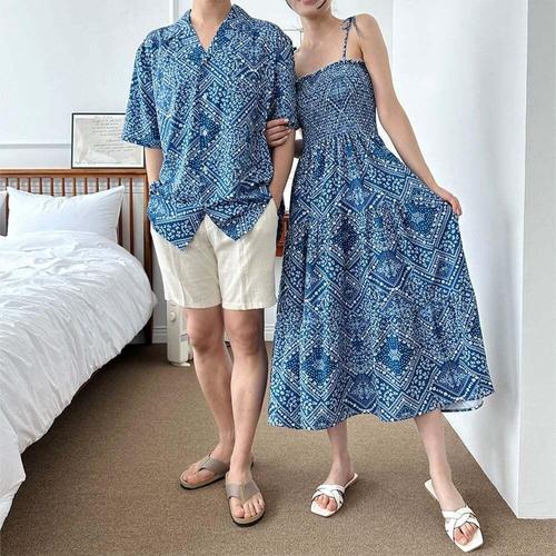 여름 바캉스 썸머룩 남녀커플룩 비치웨어 블루패턴 원피스수영복