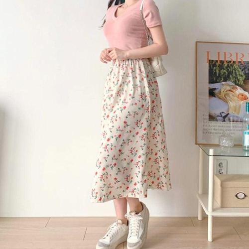 플라워 휴양지 비치 스커트 바캉스룩 여름 패턴 치마 WFLQMV9