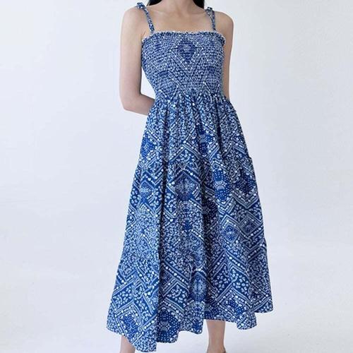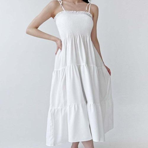 [셀럽하우스]여름 FZTQ1823 비치웨어 끈나시 플레어 롱원피스